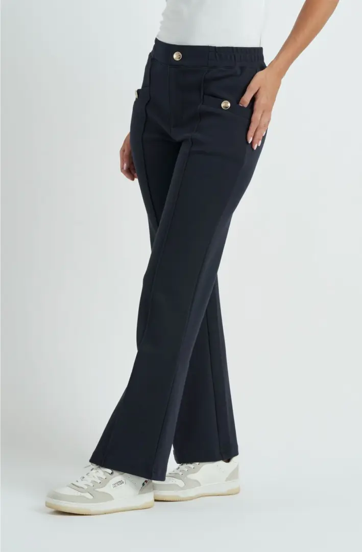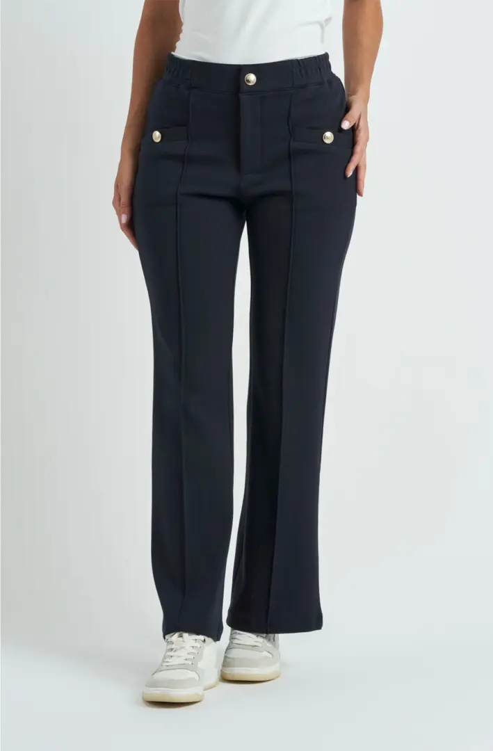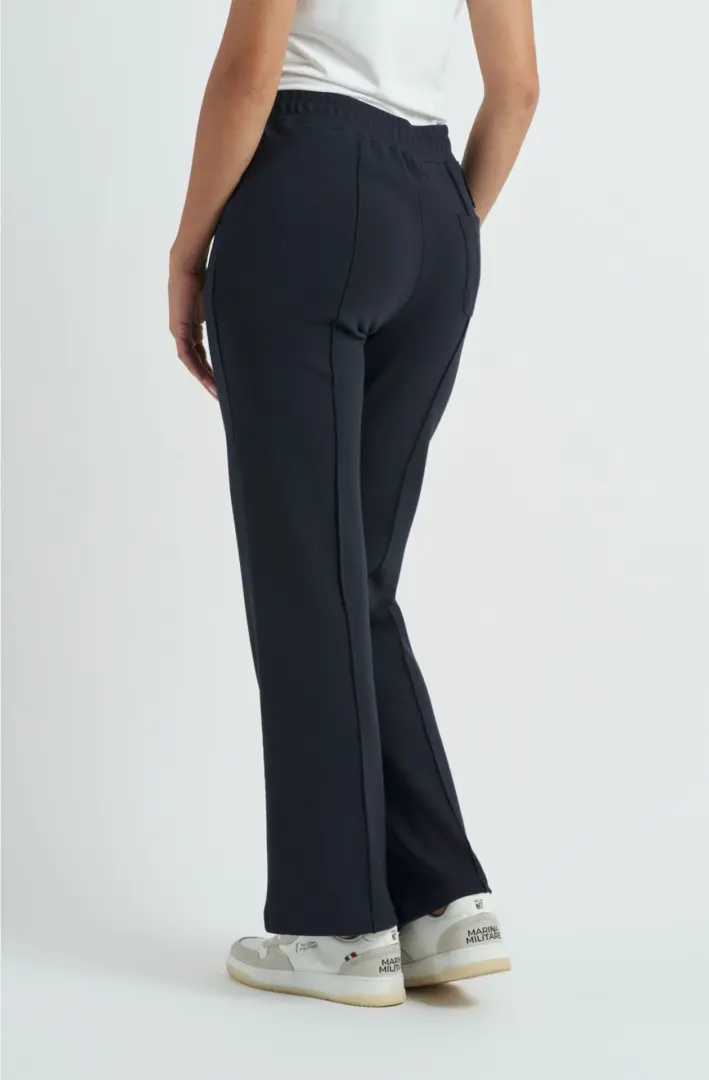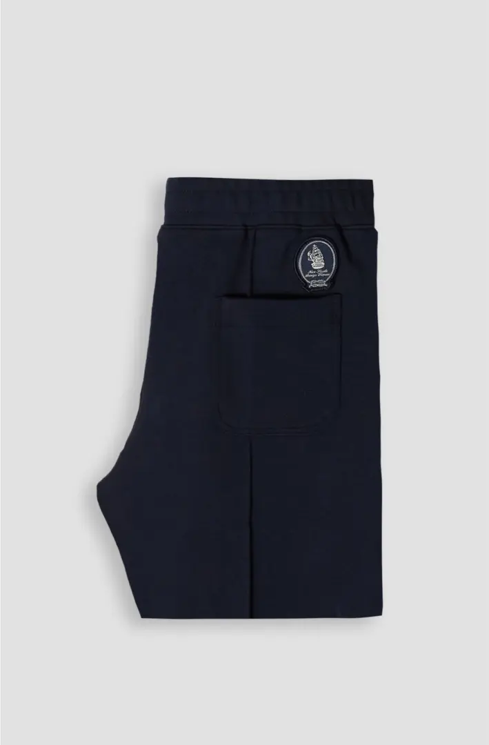 Спортивные брюки из трикотажной ткани с золотой пуговицей и потайной молнией. Боковые карманы с золотыми пуговицами, небольшой открытый накладной карман сзади с тканевой нашивкой, на которой вышит престижный парусник. Свободный крой. Можно сочетать со свитшотом.