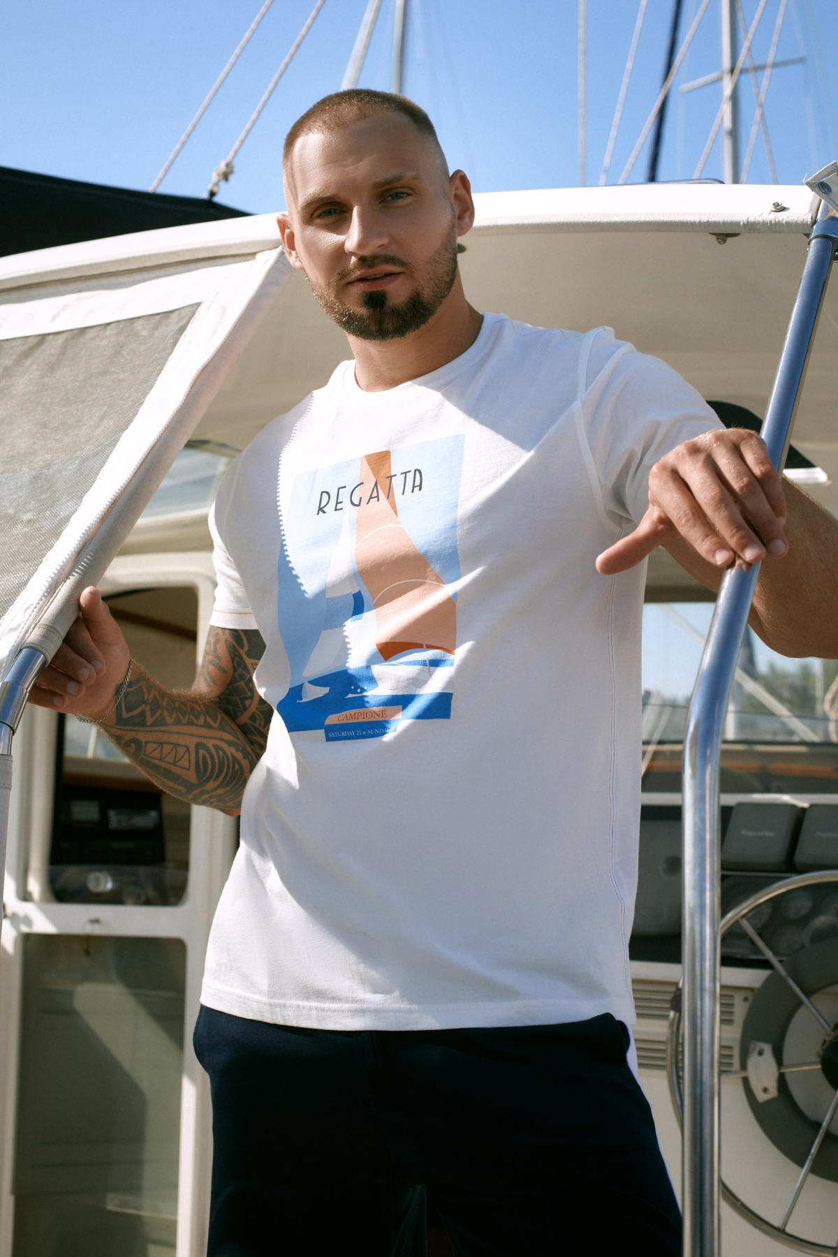 Белая футболка с морским принтом Claudio Campione — отличный вариант для любителей морского стиля. Смелый принт, вдохновленный морскими мотивами, придает футболке уникальный характер, а белый цвет служит элегантной основой для различных стилей. Футболка изготовлена из легкого материала, обеспечивает комфорт и свободу ношения, идеально подходит для теплых дней, пляжа или повседневных прогулок. Прекрасно сочетается с джинсами и шортами.