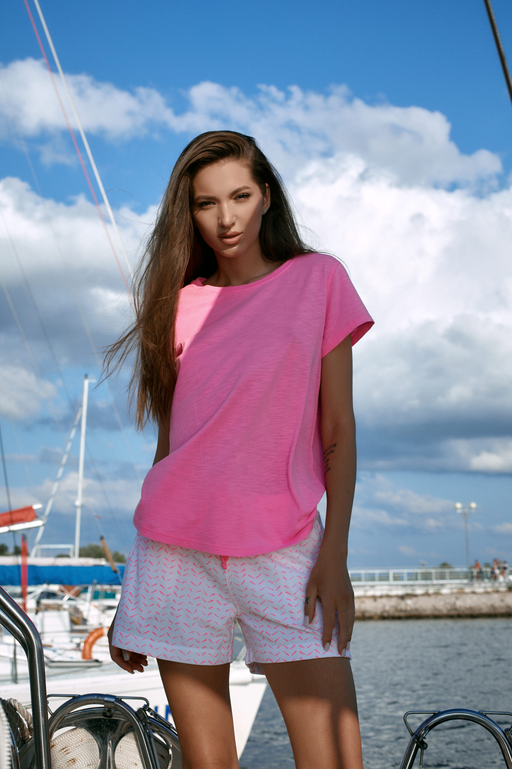 Футболка Juvia свободного силуэта с закругленным низом и женственным круглым вырезом.