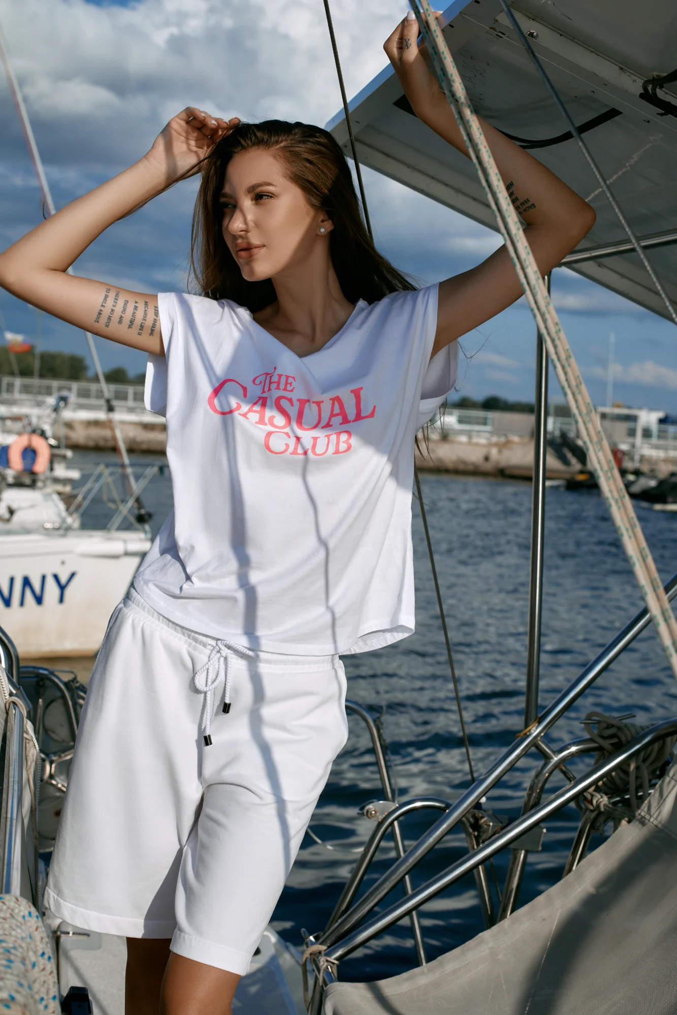 Футболка Juvia свободного силуэта с закругленным подолом, непрозрачная, с круглым вырезом горловины.