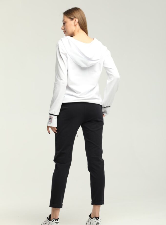 Олимпийка Lisa Campione на молнии без капюшона. Имеет контрастные завязки, ребристые манжеты и регулируемый низ. С левой стороны в области груди карман, на спине принт в морском стиле.