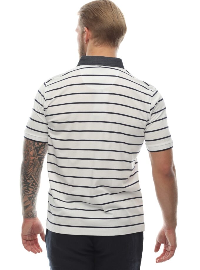 Классическое поло в широкую полоску в фирменных цветах Campione. Имеет мягкий воротник, небольшую аппликацию с логотипом бренда и застежку на три пуговицы. Станет идеальным дополнением любого повседневного образа.