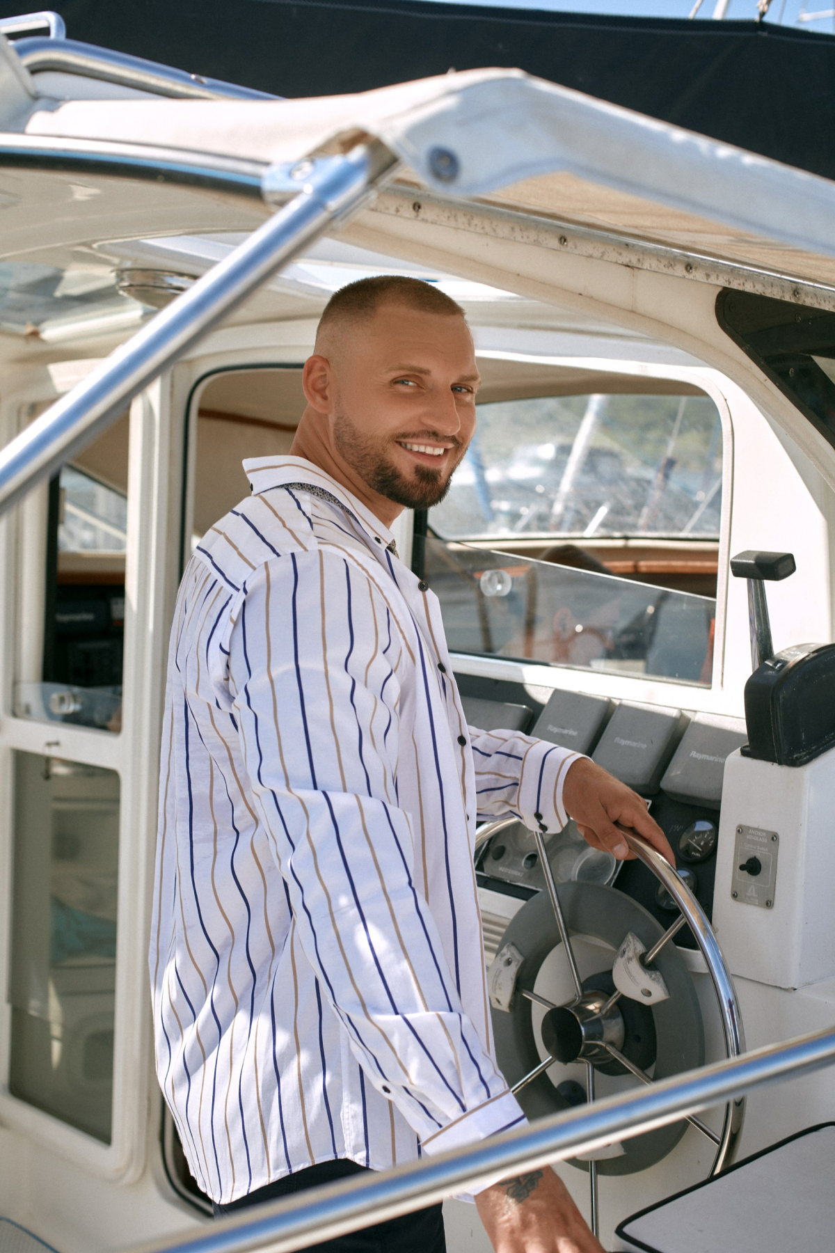 Белая рубашка Claudio Campione с вертикальными двухцветными полосками в оттенках синего и золотого — элегантное решение, которое добавит уникальности любому стилю. Вертикальные полосы контрастных цветов оптически стройнят силуэт, а сочетание синего и золотого придает рубашке современный и неповторимый вид. Идеально подходит как для официальных, так и для более повседневных образов.