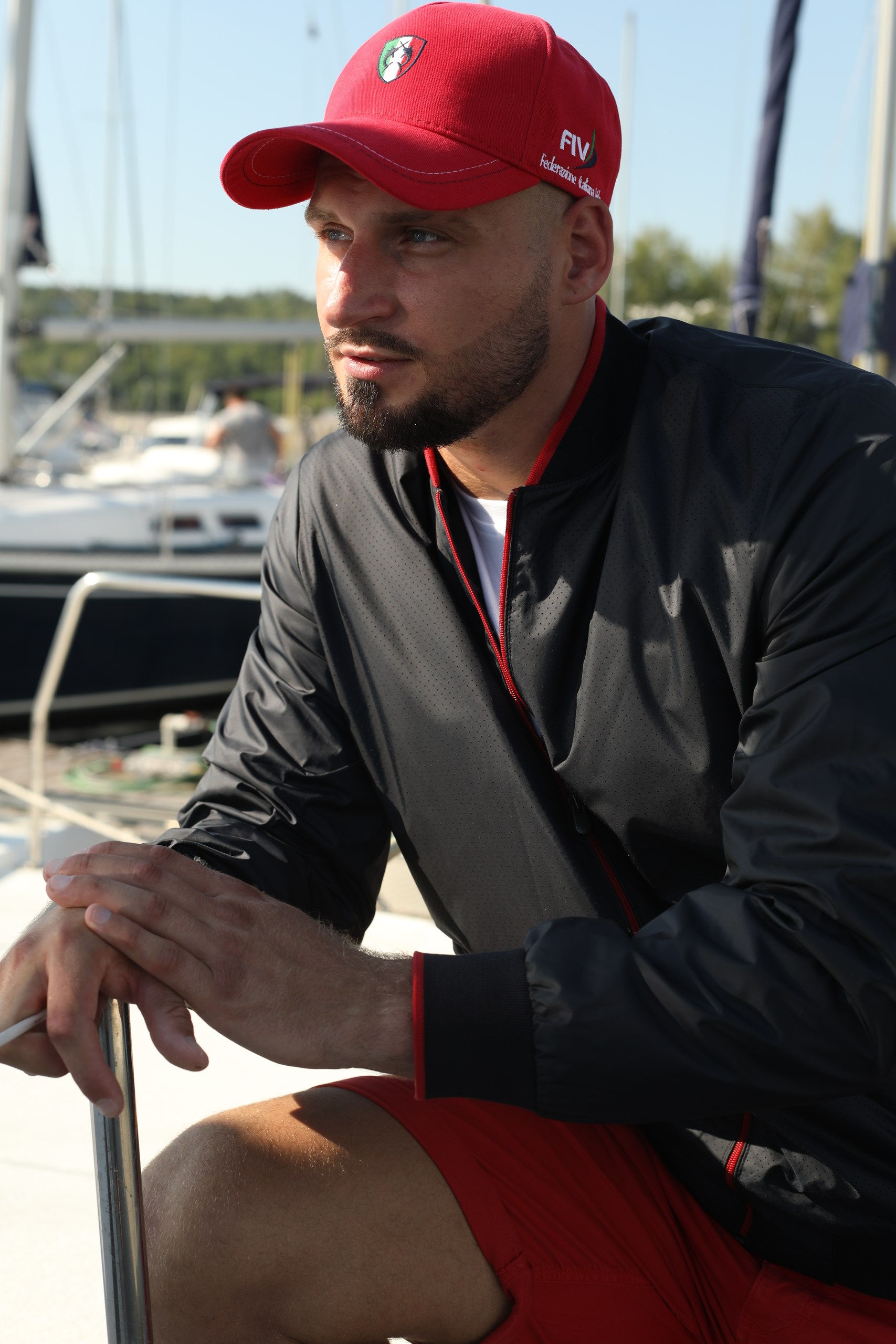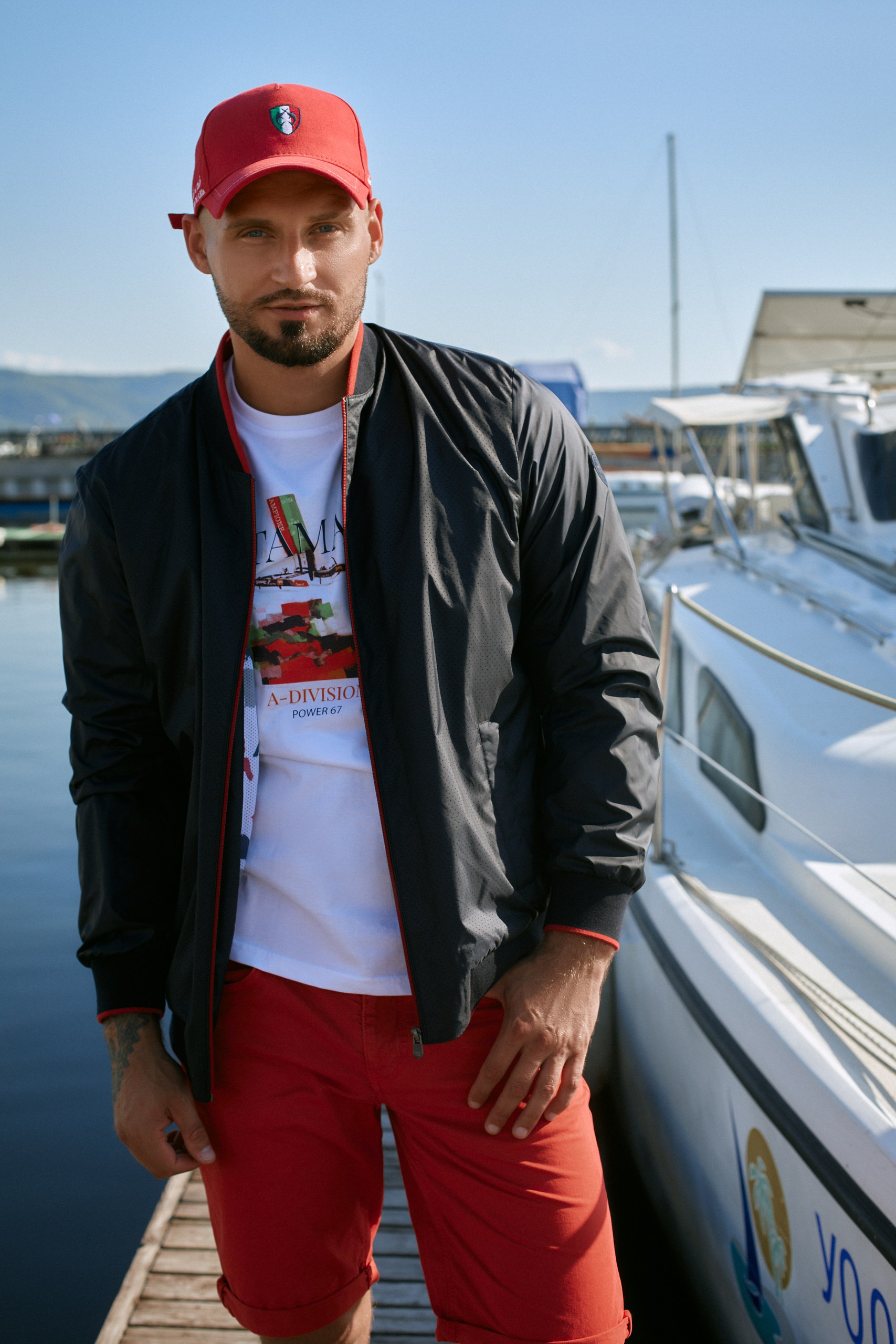 Легкая темно-синяя куртка Claudio Campione с красным кантом на воротнике и замке изготовлена из высококачественных материалов. Идеально подходит для прохладных дней.